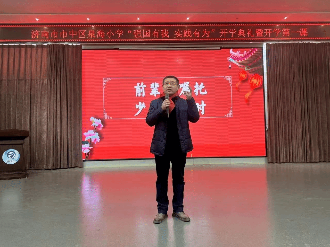 副院长杨立志教授受邀参加市中区泉海小学开学典礼,旨在进一步加强思想政治引导,发挥思政课铸魂育人的作用,助力同学们扣好人生第一粒扣子,拉开新学期拼搏向上的序幕,吹响前进的号角。杨立志教授作为泉海小学校外辅导员,为泉海学子讲授了主题为“强国有我,实践有为”的开学思政第一课,在生动感人的革命历史故事里,为学生埋下了一颗理想的种子。