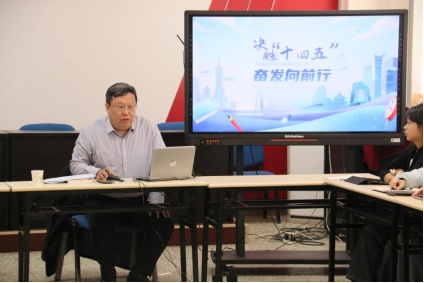 徐庆国部长以“决胜‘十四五’,奋发向前行”为切入点,从“回顾‘十四五’时期经济社会发展巨大成就”“总结‘十四五’时期发展的宝贵经验启示”和“立足复杂形势科学谋划‘十五五’”三个方面展开讲授。徐部长立足国情、社情、校情,结合思想政治教育专业特色,用详实的数据、鲜活的案例、深刻的道理,系统阐释了“十四五”以来我国制度优势更加巩固、创新活力更加强劲、物质基础更加雄厚、发展基础更加坚实的生动实践,引导同学们深刻认识“十四五”规划在中国发展史上的里程碑意义,准确把握发展成就背后的宝贵经验,科学看待当前形势与未来蓝图。在授课过程中,课堂气氛活跃,同学们踊跃发言、积极互动,展现了马院学子开阔的视野和深度的思考。