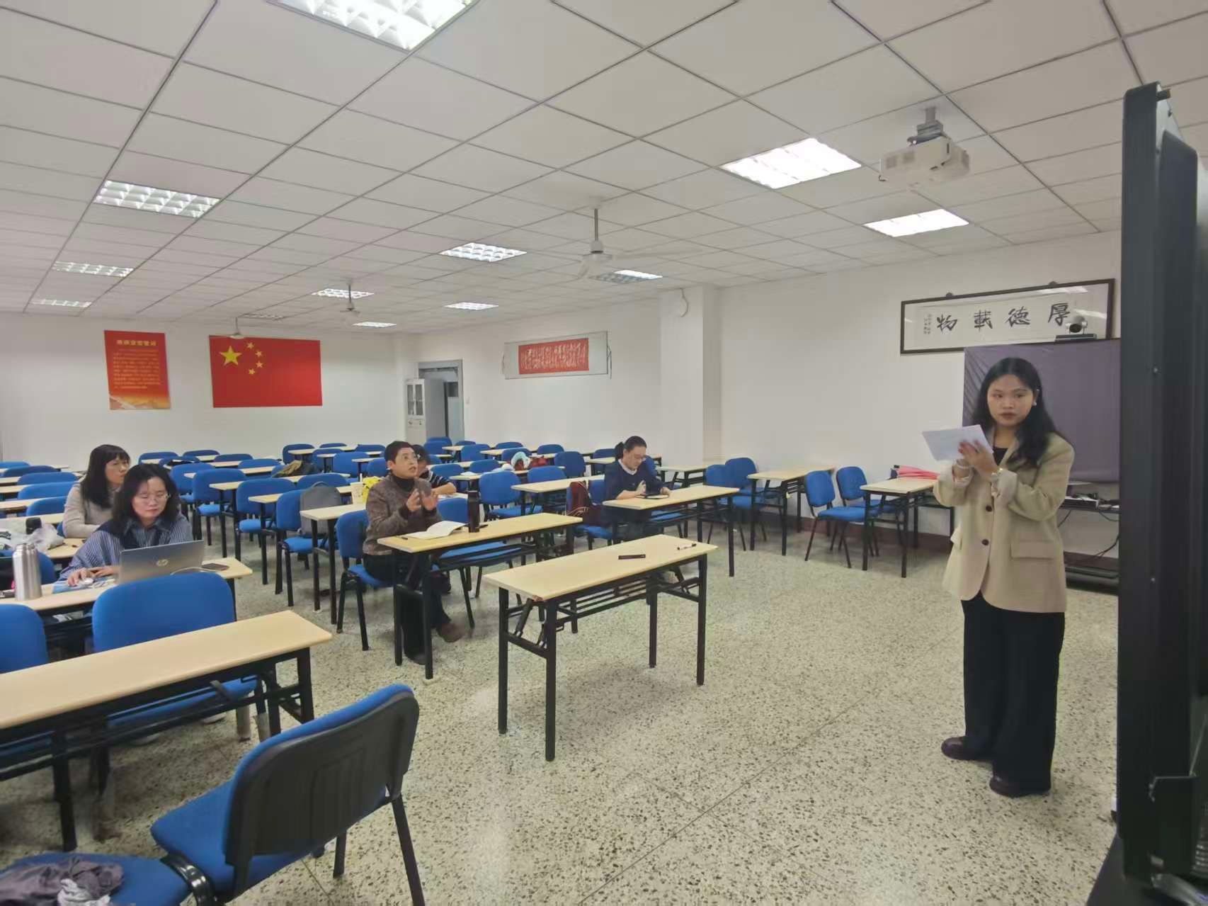 专家指导环节中,李霞、朱梅老师对参赛教师们的表现给予了充分肯定,并围绕教学设计、课程思政融入多个维度,进行了深入细致的点评与交流,并提出了诸多富有建设性的改进建议。李霞老师指出,选题内容要连贯,具有一定的逻辑性,注意思政课的学理性。朱梅老师指出,教师应注重平时的积累,选取的例子要贴近学生生活,注重激发学生听讲的兴趣。两位老师的精准指导为参赛教师优化课程设计、创新教学方法提供了明确方向。同时,参会教师围绕教学创新成果报告撰写、参赛组别选择、课堂教学实录等问题展开热烈研讨。