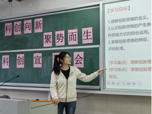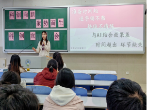 陈静怡同学以自身参赛经历为切入点,系统介绍了“挑战杯”、“建行杯”、师范生从业技能大赛等多项重要科创赛事的规则、流程与备赛重点,让同学们对各类科技创新赛事有了清晰且深入的认知。在问答环节,她耐心细致地解答同学们的疑问,以轻松亲切的互动进一步点燃了学院学子的参赛热情,现场交流踊跃,氛围热烈。