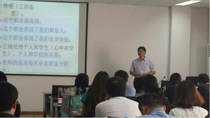 教师发展培训班”的七十余位新进教师做了《如何提高教学能力》的专题讲座和教学示范课。李朋忠老师结合自身经历、亲身体会阐述了“学生眼中的好老师是什么样的?”、“要做一个好老师应该做到什么?”等问题。他向青年教师们指出,要做一个好教师必须做到十二个字:热爱、明白、付出、个性、实话。不少青年教师认为,李朋忠老师的讲座深入浅出、语言生动,对他们尽快提高教学能力将会起到重要作用。