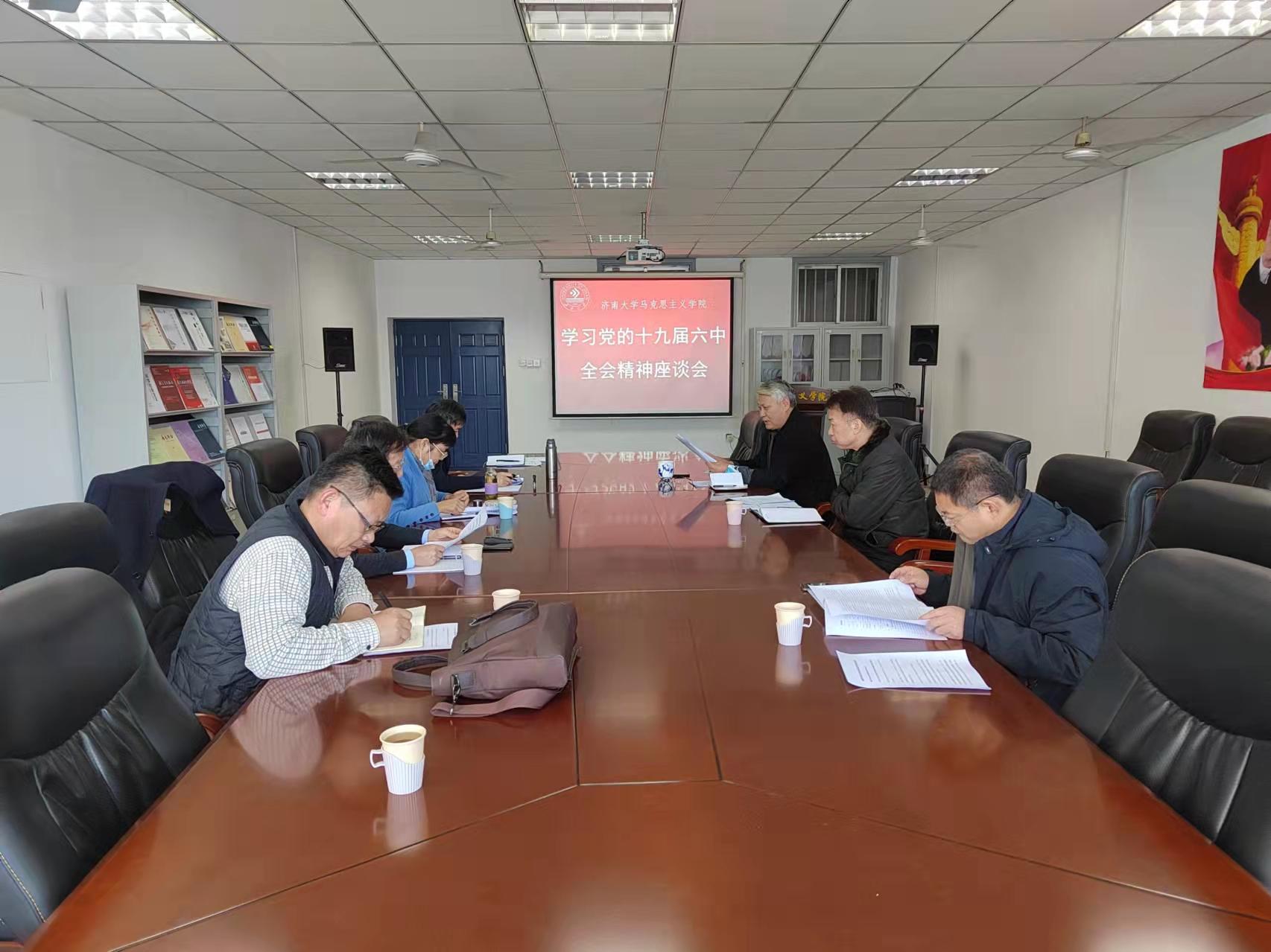 20211112日下午,H动画 召开“学习党的十九届六中全会精神座谈会”,学院党委班子、各支部书记参加了会议。